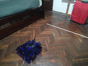 Ya con un diseño mas estable se decidió empezar a realizar las pruebas en terrenos de juego cuadrados y circulares, sin oponente, para comprobar que funciona adecuadamente. En lo que respecta a las pruebas consistían en ver cuanto tiempo aguantaba sin salirse de la pista, ya con 5 minutos se dio por completada la prueba.