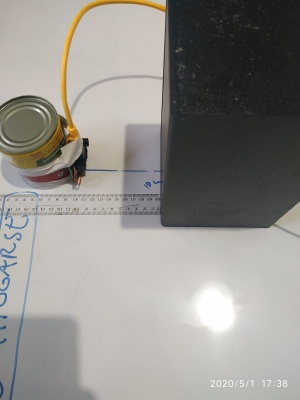| − | + | [[Archivo:Calibrando_Sensor_de_Distancia.jpeg|miniatura|Calibración del sensor de distancia]] | |